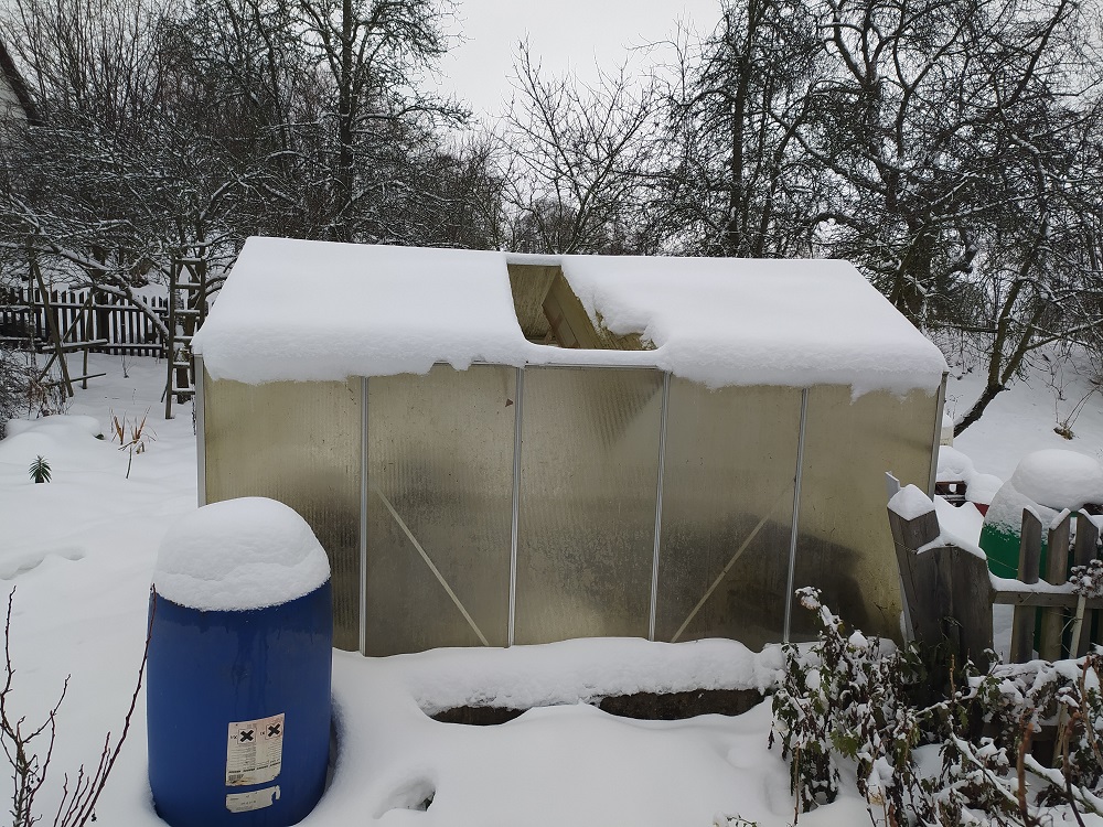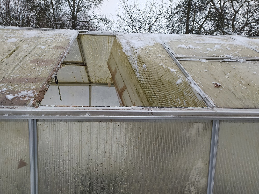 Každopádně by bylo vhodné střechu skleníku vystužit, je to dost velký plocha, když napadne vrstva sněhu, hrozí prolomení.