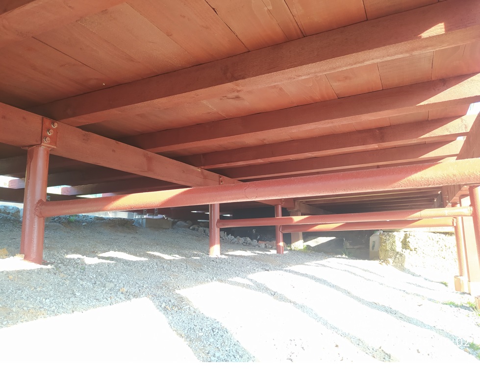 Je to kůlna. Pokud nazaděláš ten prostor pod kůlnou ze stran, nebude ti tam zatékat a jelikož tam neprší tak tam bude celoročně sucho. Problém by byl kdyby to bylo nad vodu např. molo či mostek.