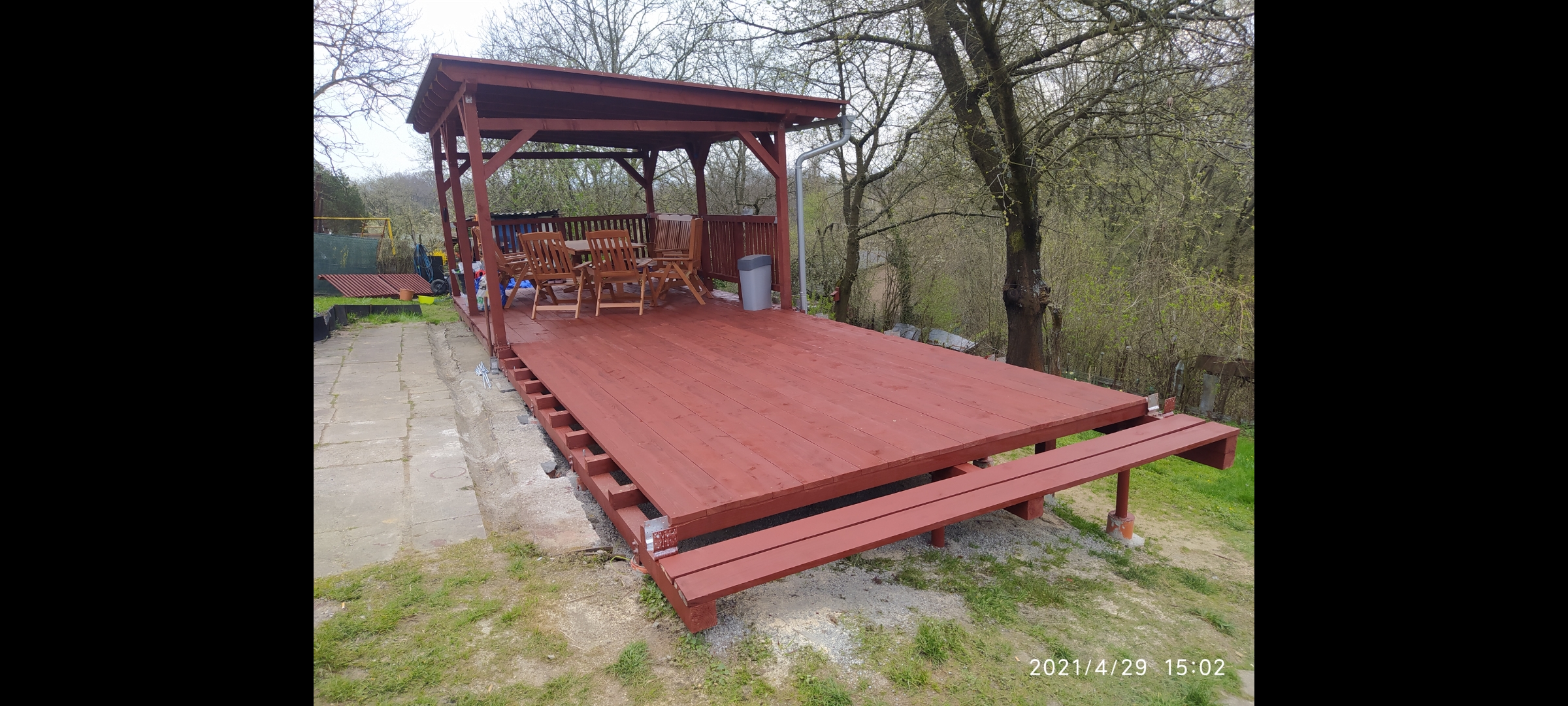 Jenomže doplňující foto zachycuje pergolu, tedy před tím, než dostala stěny a stal se z ní zahradní domek.