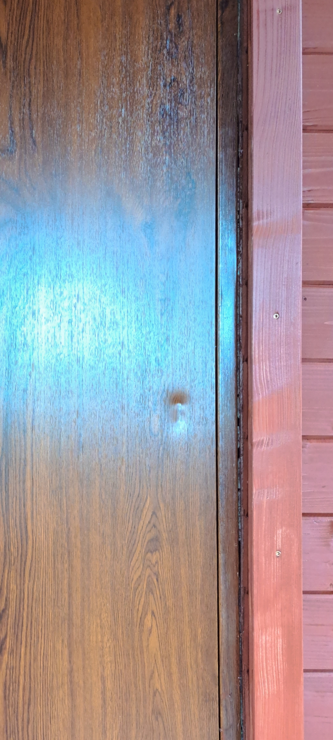 Dobrý den,mám v zahradní chatce vchodové dveře Zeus.Jsou kovové a potažené (nevím čím). Můj problém je, že mám na nich malou promáčklinu. Dá se to nějak opravit? Viz foto.