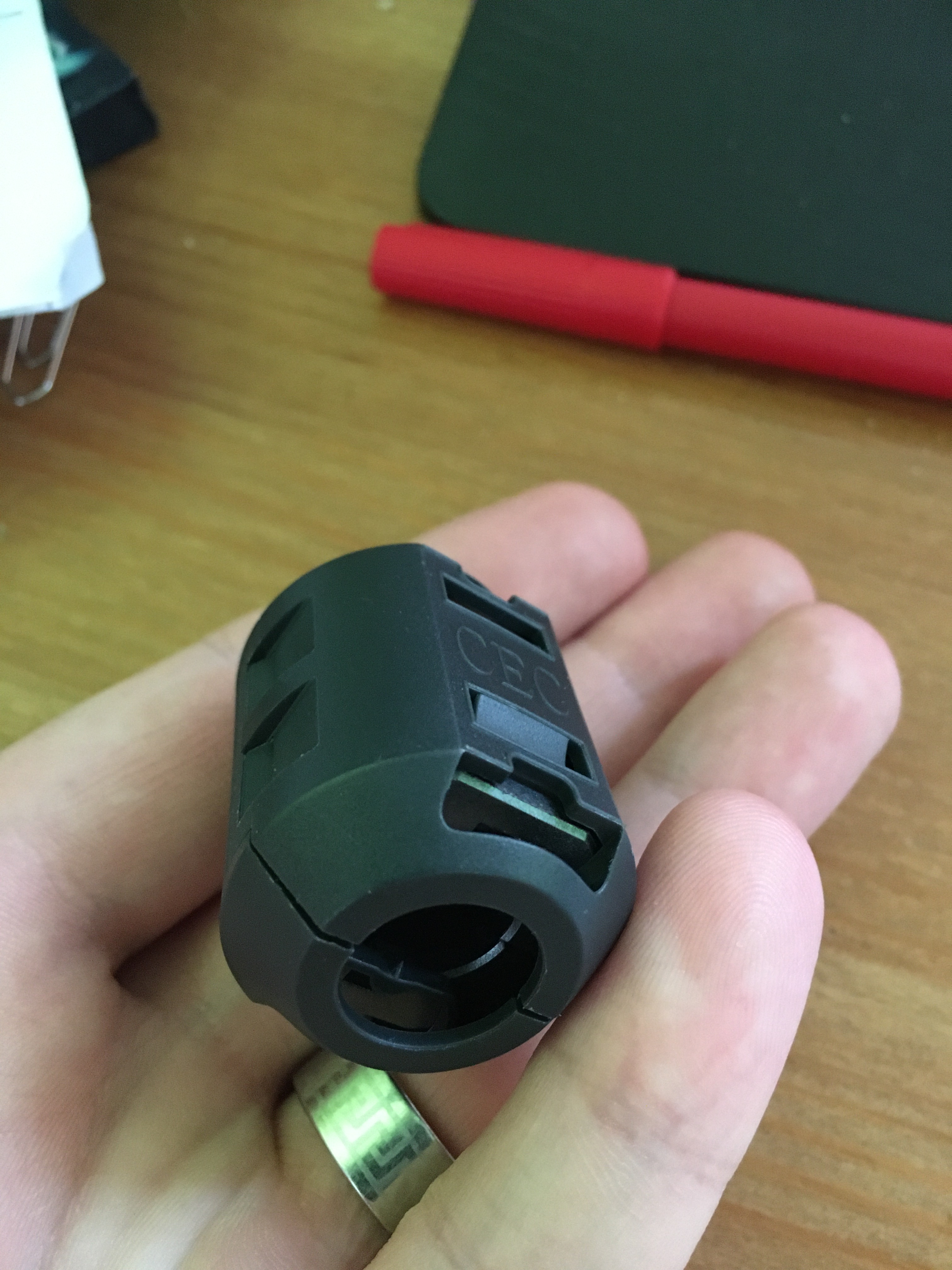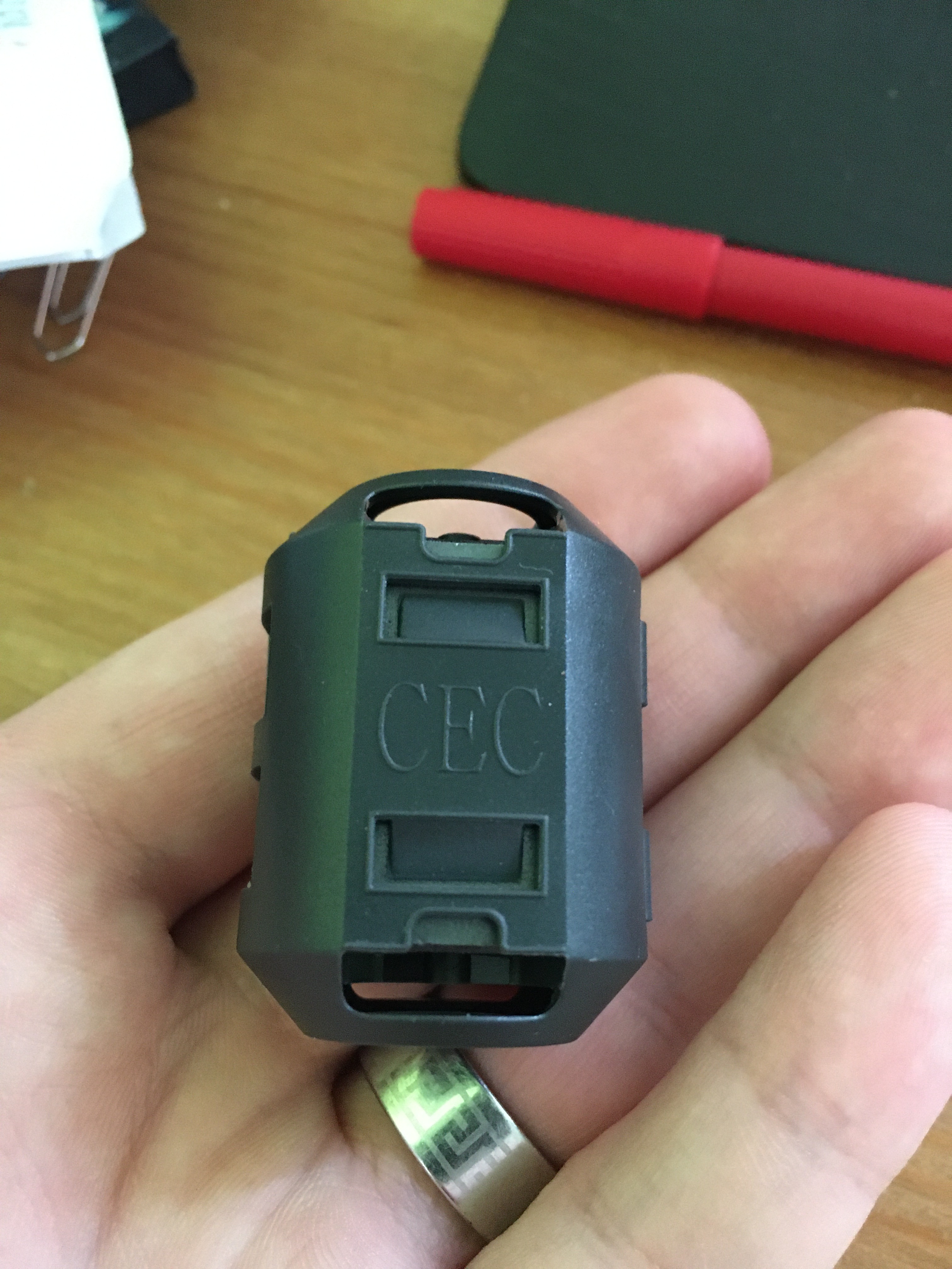 Je na nich uvedeno jen CEC. Usoudil jsem, že to bude mít společné něco s kabeláží - myslel jsem prvně, že to je nějaká svorka na spojení kabelů k sobě, aby se do sebe nezamotávaly, případně nějaká ochrana proti rušení, tedy na stínění kabelů. Ovšem tohle to asi nebude.