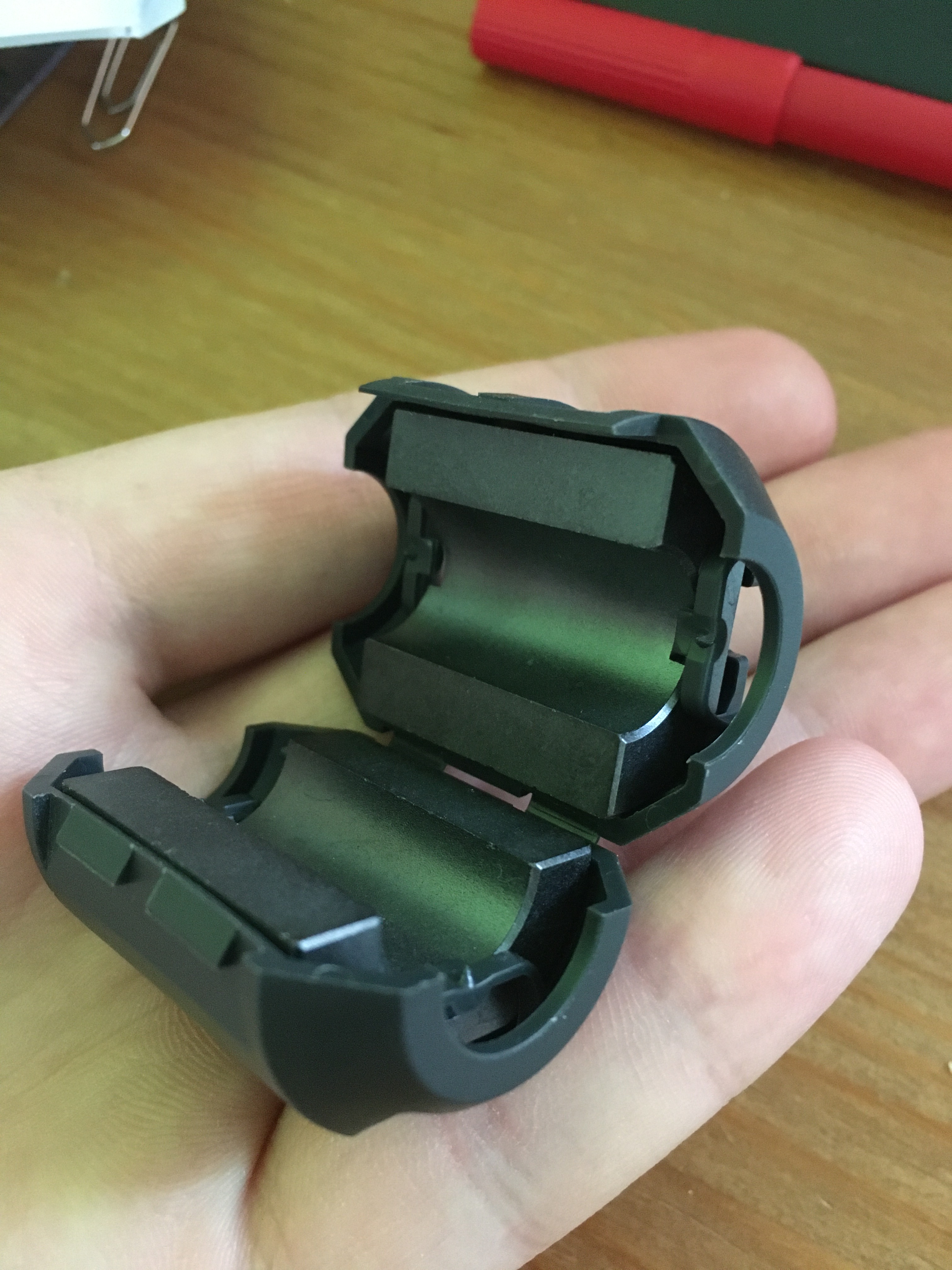 Uvnitř plastového pouzdra kabelového filtru je Ni-Zn feritové jádro, které potlačuje šum. poslední