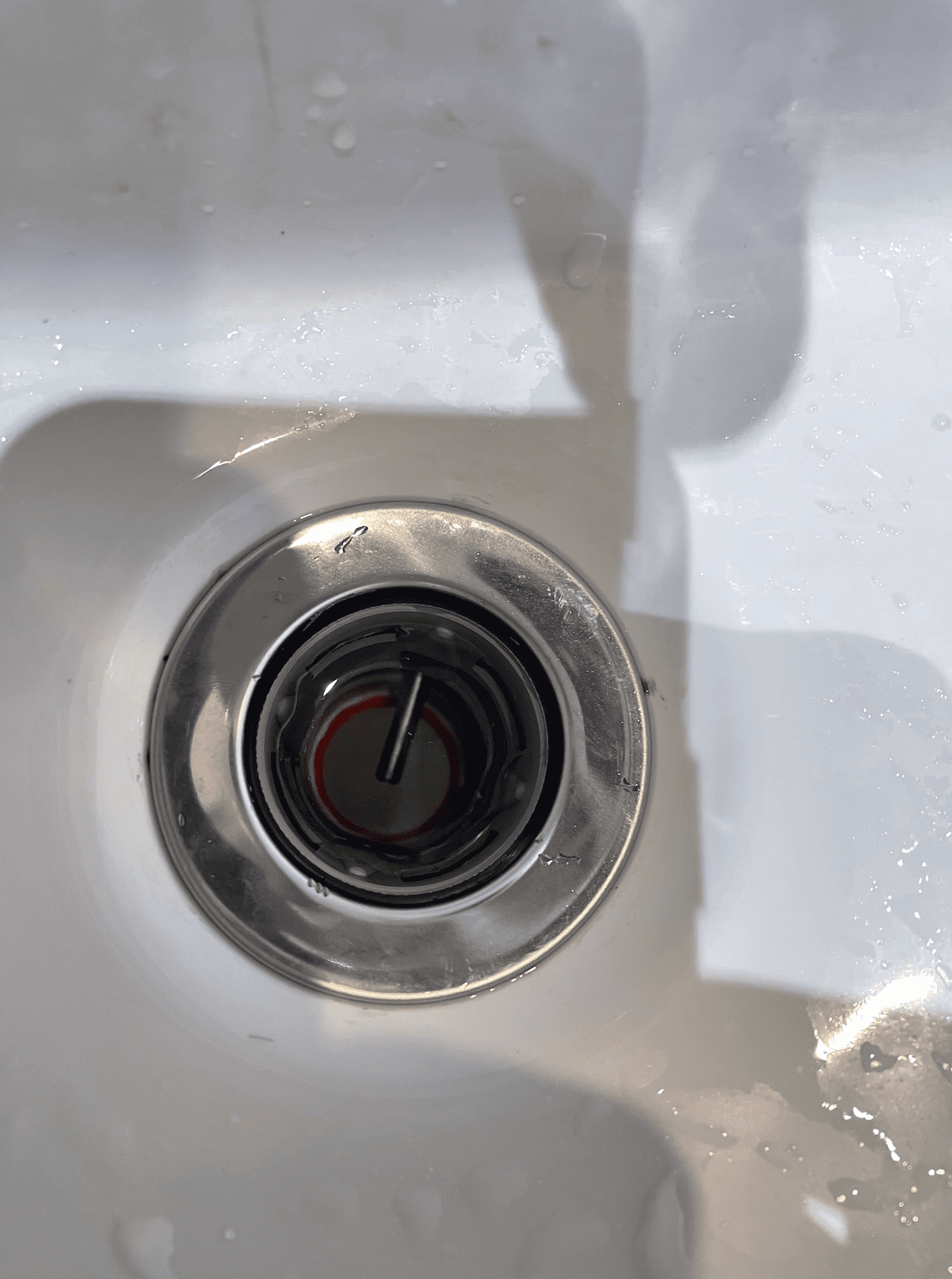 Dobrý den, vyměnil jsem na koupelnovém umyvadle výpusť a celý odpadní sifon, neboť už netěsnil, ale po výměně neodtéká voda tak jak by měla. Napustí se umyvadlo a voda jen velmi pomalu mizí (viz foto). Nic neprotéká. Čím by to mohlo být? Díky