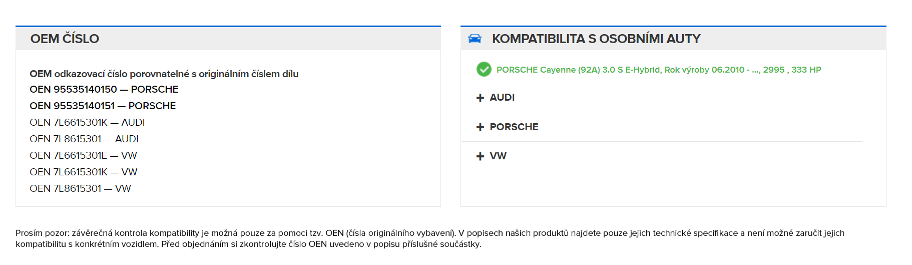 Znamená to tedy, že pokud OEM číslo sedí s číslem nabízeného výrobku lze jej tedy použít bez ohledu na ostatní parametry ?