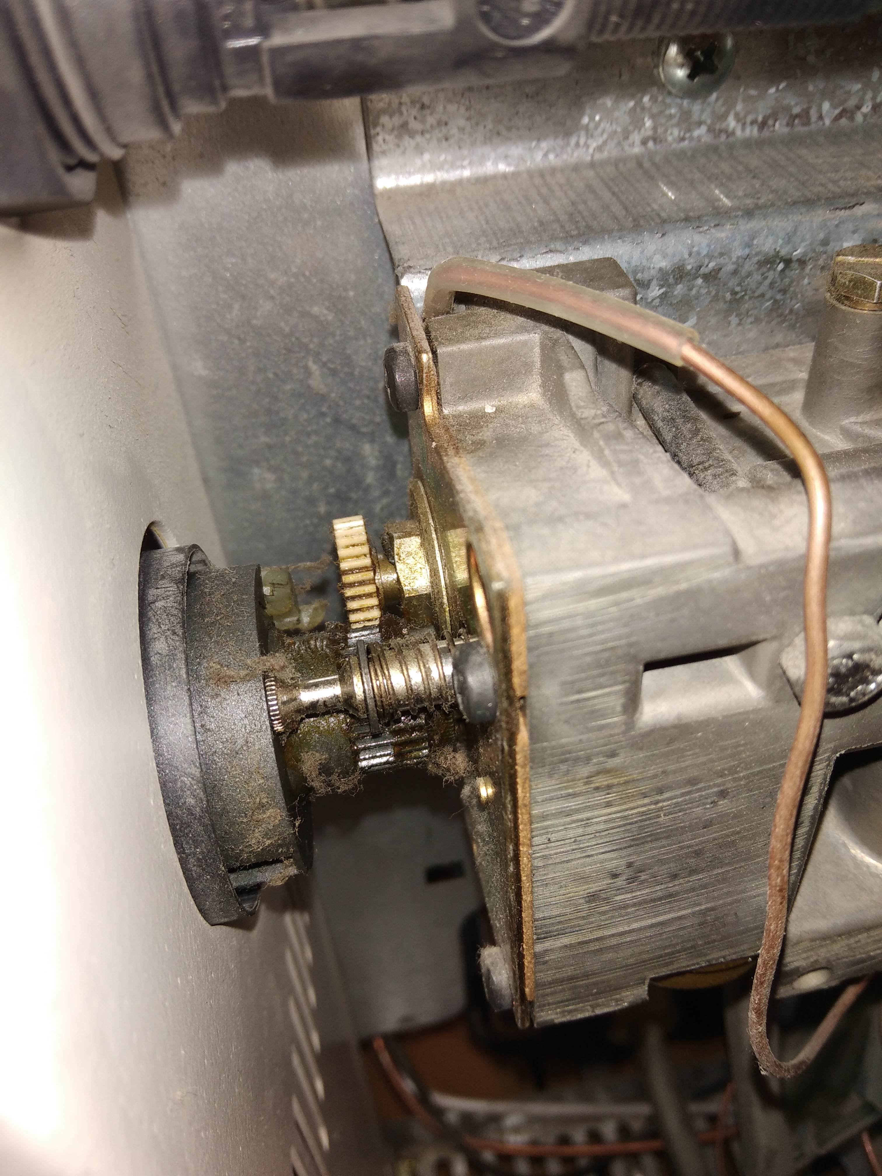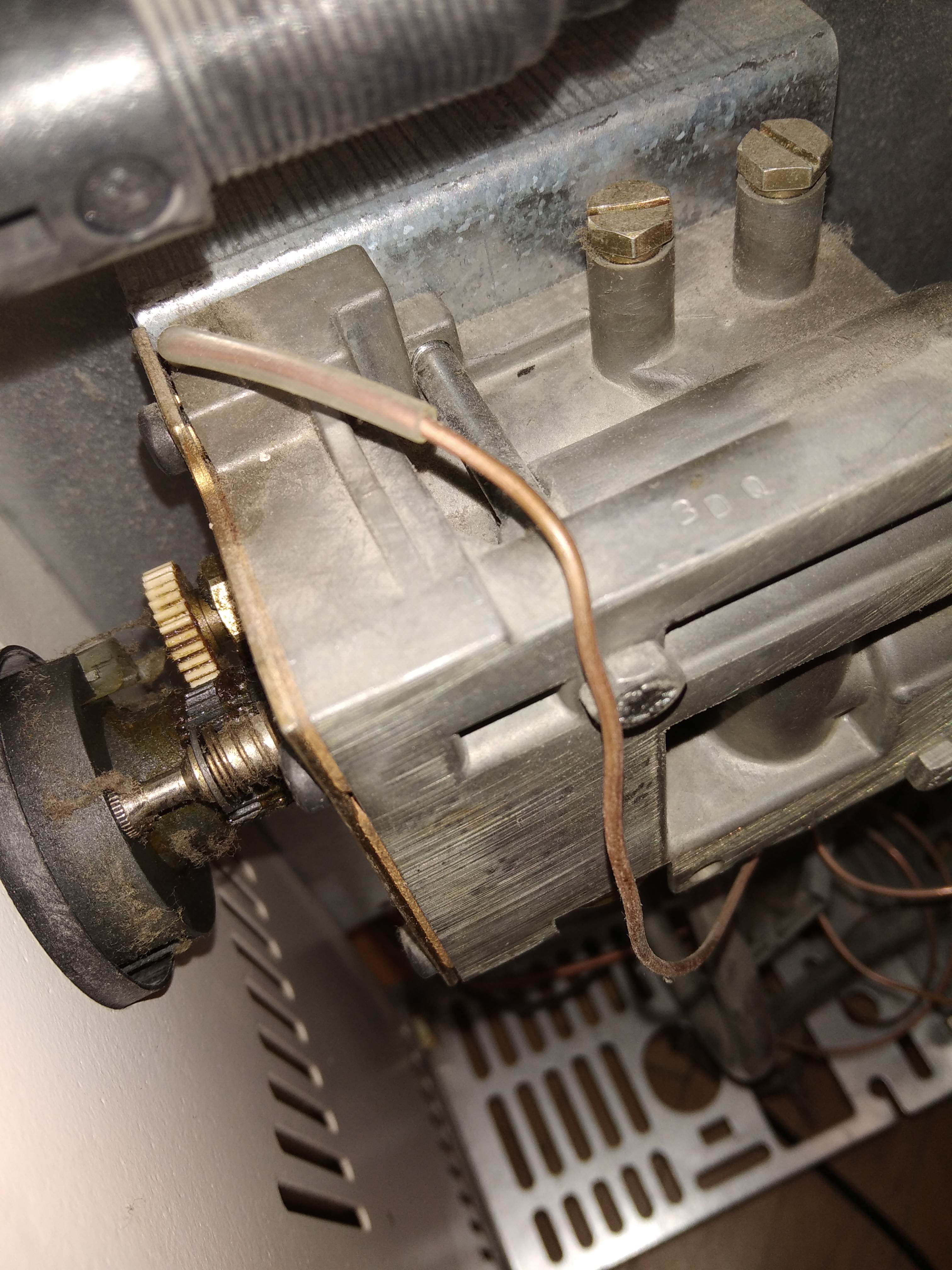 Nerozebírat, promazat mechanismus termostatu (kola, pružiny, hřídelky) snadno vzlínavým olejem, např. WD40 spray, MD spray a po chvíli párkrát protočit. Zřejmě zatuhlo mazivo okolo hřídelek stářím, prachem a zimou, ohřátím částečně změkne a proto jde po zatopení snáz.