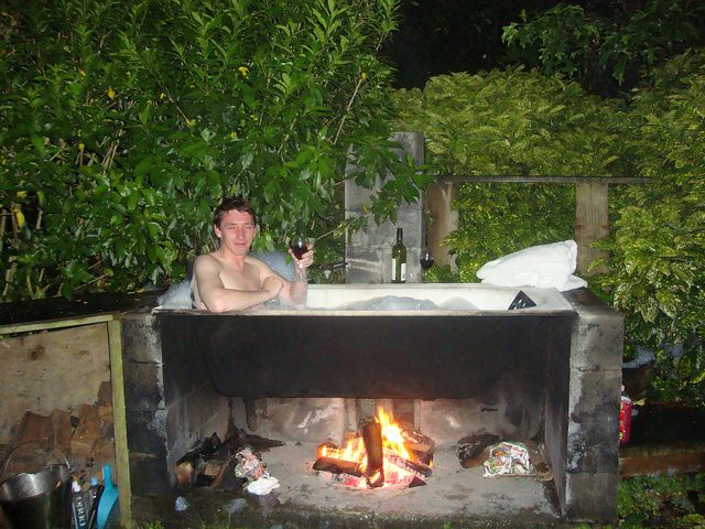Je to úsměvné, ale když jsem sedoval jakýsi pořad o sběratelích starožitností, tak tam byla plechová vana u ní zvenku připevněná nádoba typu gril na ohřev a k tomu byla i ruční pumpovací sprcha.