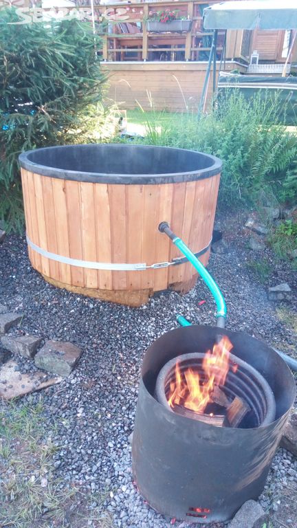 Prodávají se kamna pro hot tub, to je přesně ono. Jsou to vlastně normální kamna s vestavěným výměníkem, který samotíží ohřívá vodu v malém zásobníku, ze kterého se to bere čerpadlem do toho sudu. Ta kupovaná stojí nesmysl, protože je to zrovna móda, ale nic na tom není, jestli umíš svařovat tak si je úplně v pohodě uděláš.