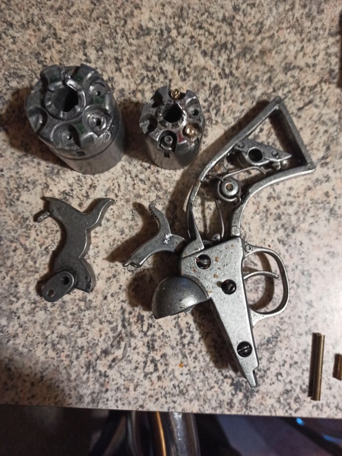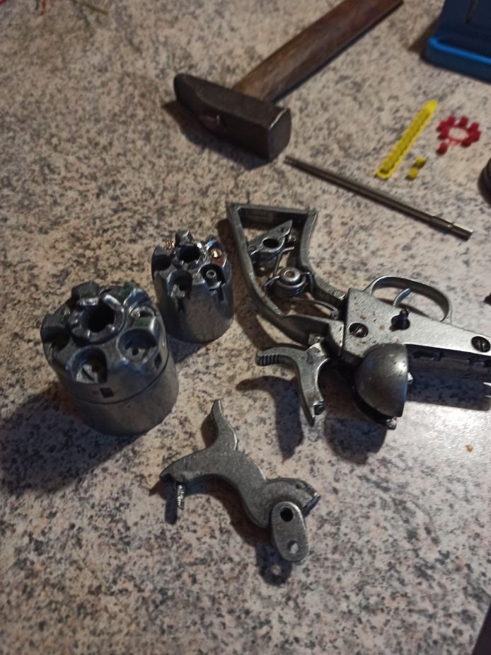 Teprve když to půjde kladivem, tak má cenu to zkoušet i na těch revolverech. (A takhle se mi zdá, že už nškteré ty pistony jsou na konci úplně opotřebované dokulata a zasloužily by zbrousit do rovna, ale vidím jich jen pár a ještě je nevidím dobře. A pokud to i tak bude odpalovat, tak je brousit netřeba. )