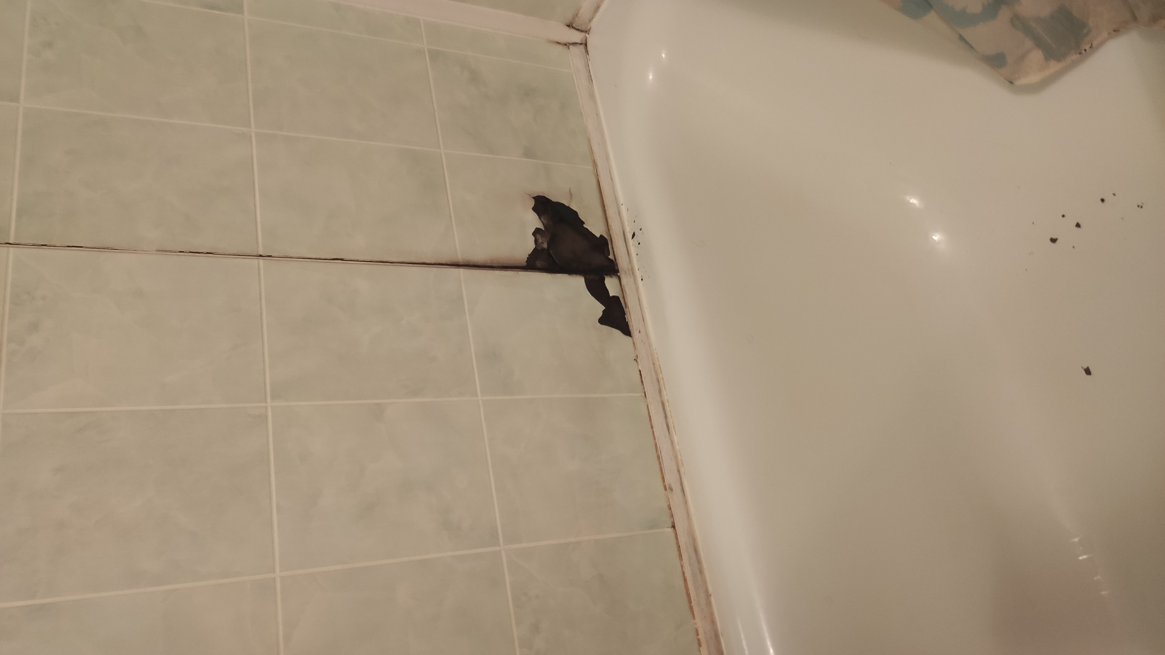 v koupelně se nám začala odlupovat zeď nad vanou. Vypadá to jako kachličky, ale je to jen jejich imitace v podobě fólie a pod ní je materiál, který se teďka drolí.