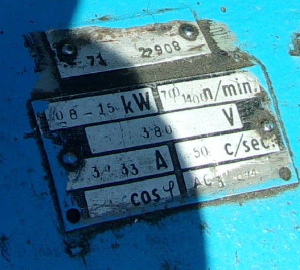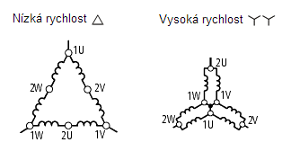 Jedná se o dvouotáčkový 3fázový motor 700ot. a 1400ot. Přepinačem se mění počet otáček. 700ot je zapojení do trojuhelníku přímo ve vinutí motoru. 1400otáček se pomocí přepinače přepojí do dvou hvězd. Přehození fází ve vidlici se mění směr otáček.