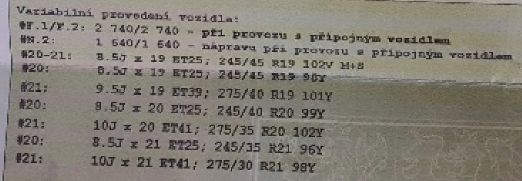 neni to nahodou takhle? obe kola r19 - 8.5J x 19 ET25; 245/45R19 102V M+S predni r19 - 8.5J x 19 E…