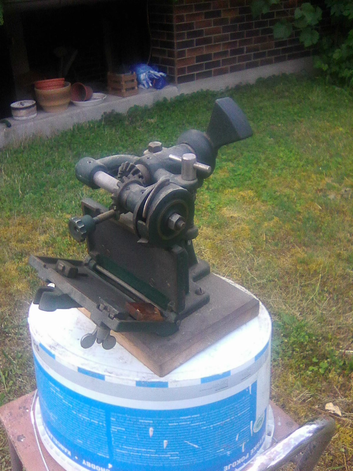 moc děkuji , pochází to z Dobříše ,ale nikdo již neví který řemeslník v domě bydlel .ozubené kolečko je ruční matka kterou se otevře víko s dvěma posuvnými dorazy , ani jeden však nejde nastavit aby přesahoval ven tudíž se tam muselo cosi zastrčit a pak nastavit , je pravděpodobné ,že to mohla být i spokní deska která se nastavovala dle síly materiálu vůči tvarovacímu kolu .