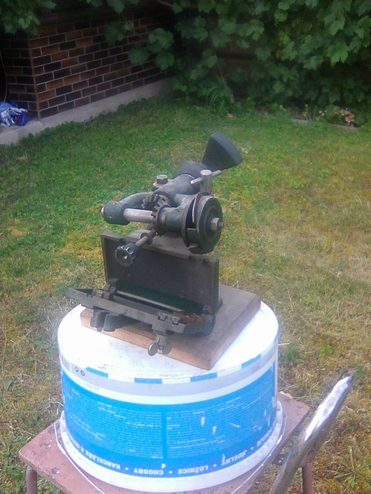 moc děkuji , pochází to z Dobříše ,ale nikdo již neví který řemeslník v domě bydlel .ozubené kolečko je ruční matka kterou se otevře víko s dvěma posuvnými dorazy , ani jeden však nejde nastavit aby přesahoval ven tudíž se tam muselo cosi zastrčit a pak nastavit , je pravděpodobné ,že to mohla být i spokní deska která se nastavovala dle síly materiálu vůči tvarovacímu kolu .