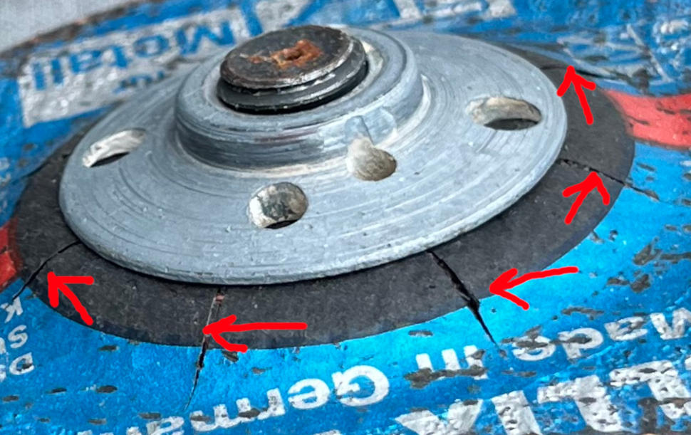 Navíc bych ten kotouč asi raději vyhodil, ty praskliny nebudí moc důvěru, obzvlášt bez ochranného krytu...
