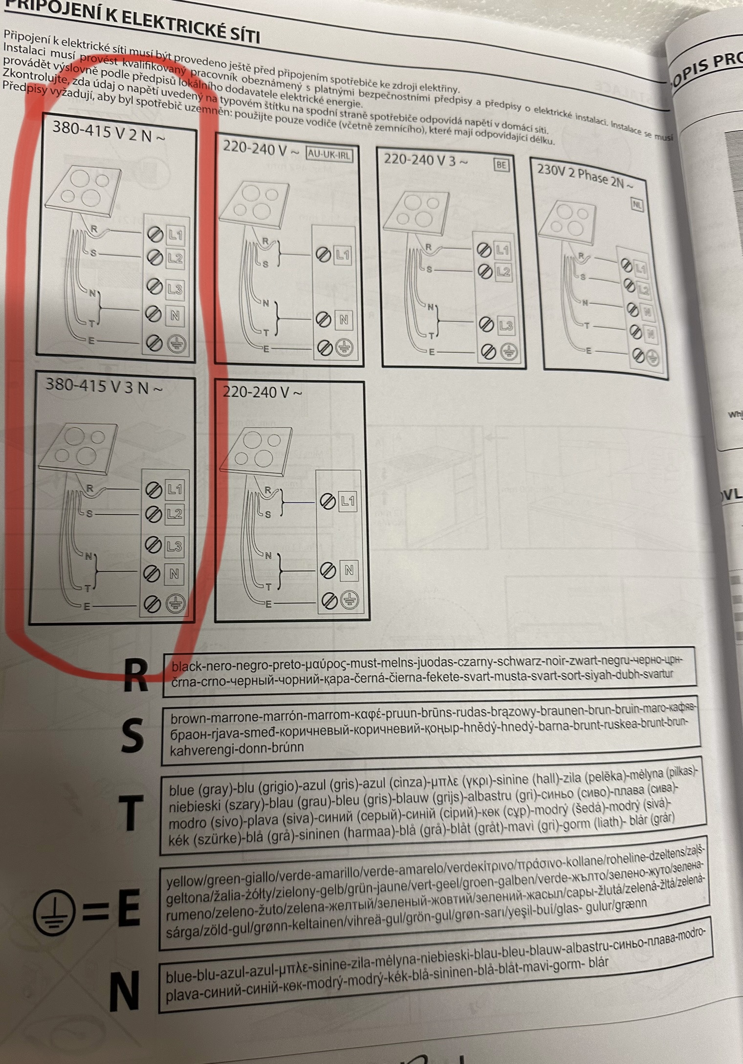 Na druhem obrazku to mas pripraveno pro 240V. Ja bych black/brown rozdelil a pripojil na 2 fáze