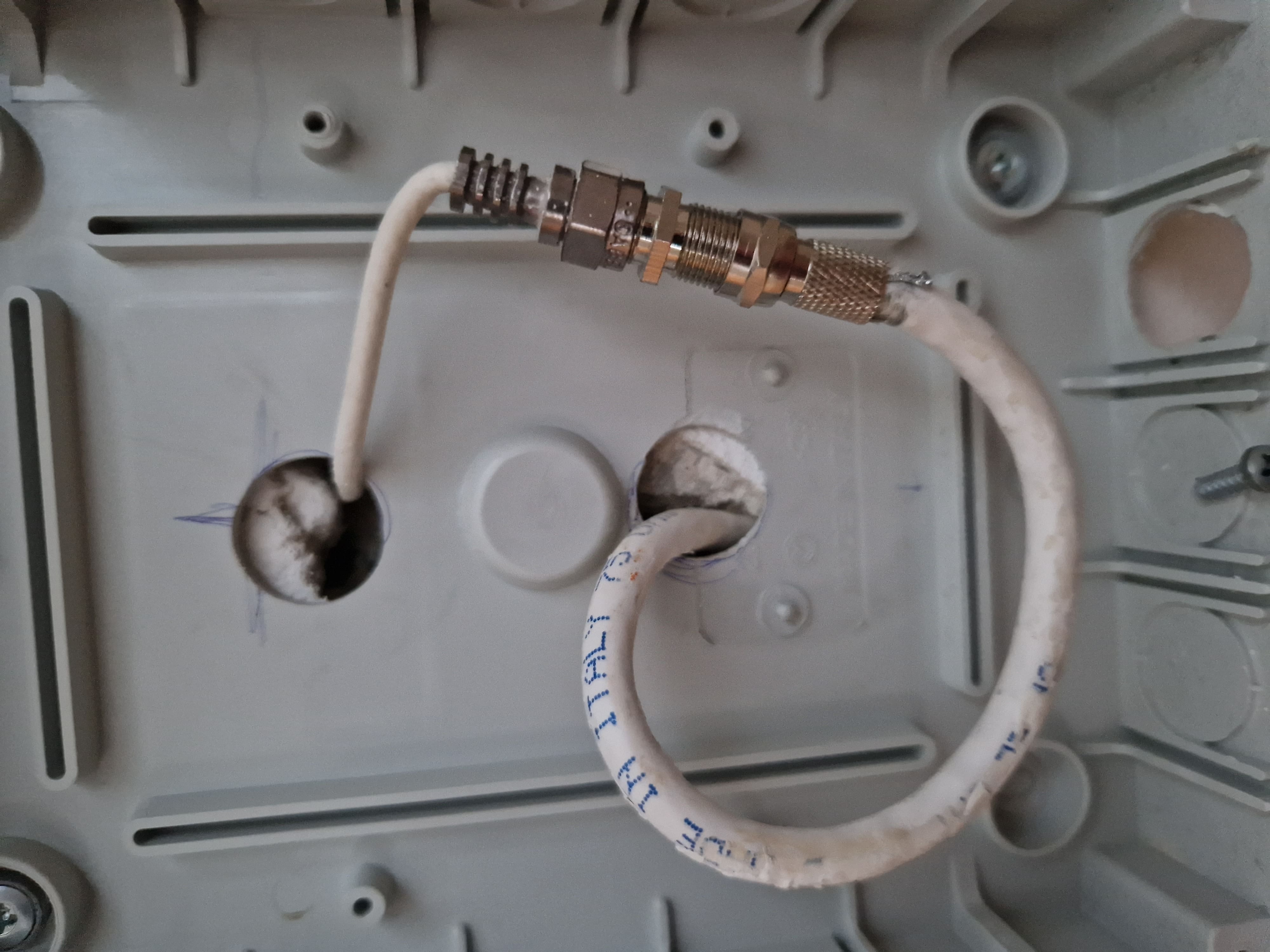 Mé podezření je koaxiální kabel pro internet/TV (Vodafone / bývalé UPC). Případně nějaký zvláštní vývod "domovní" antény? Ale vidím 2 druhy kabelů a zvláštní spojku. Jsem úplný laik. Předem děkuji