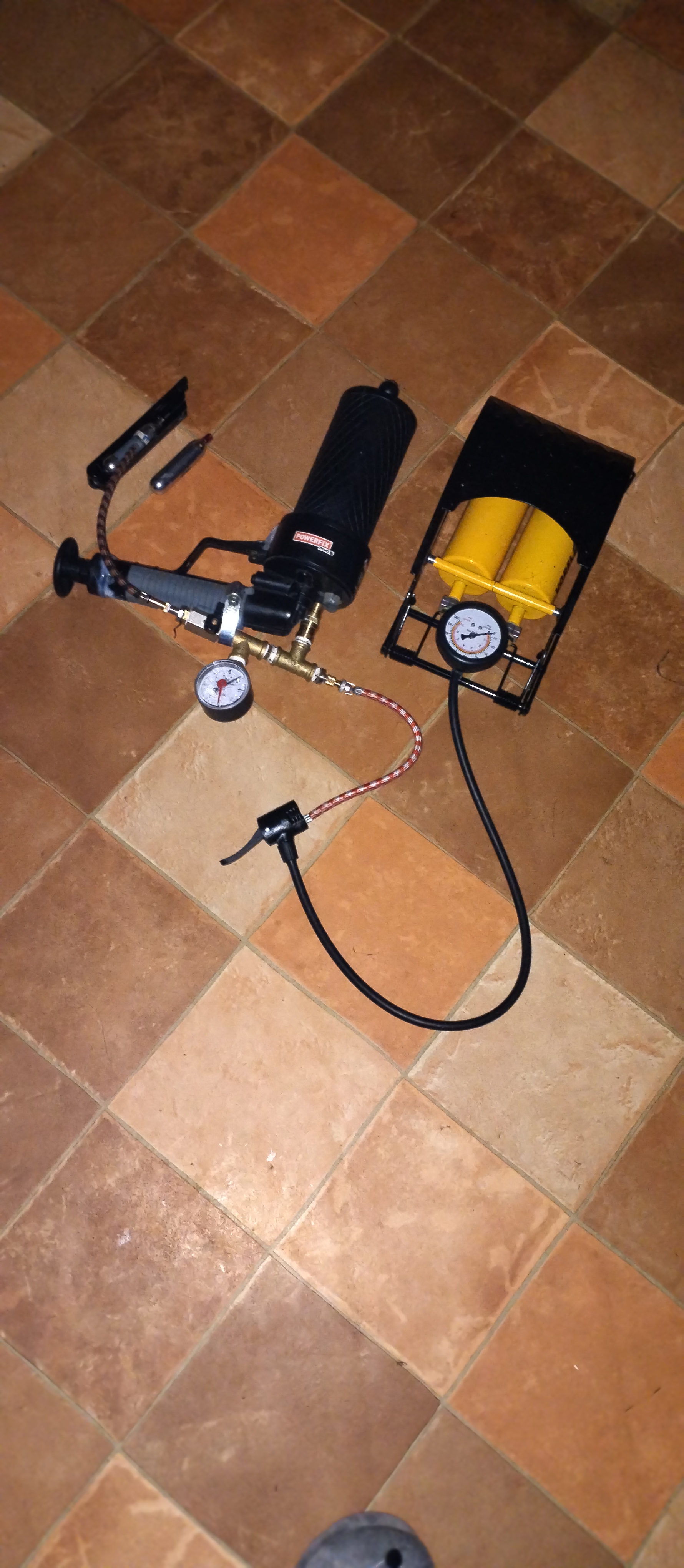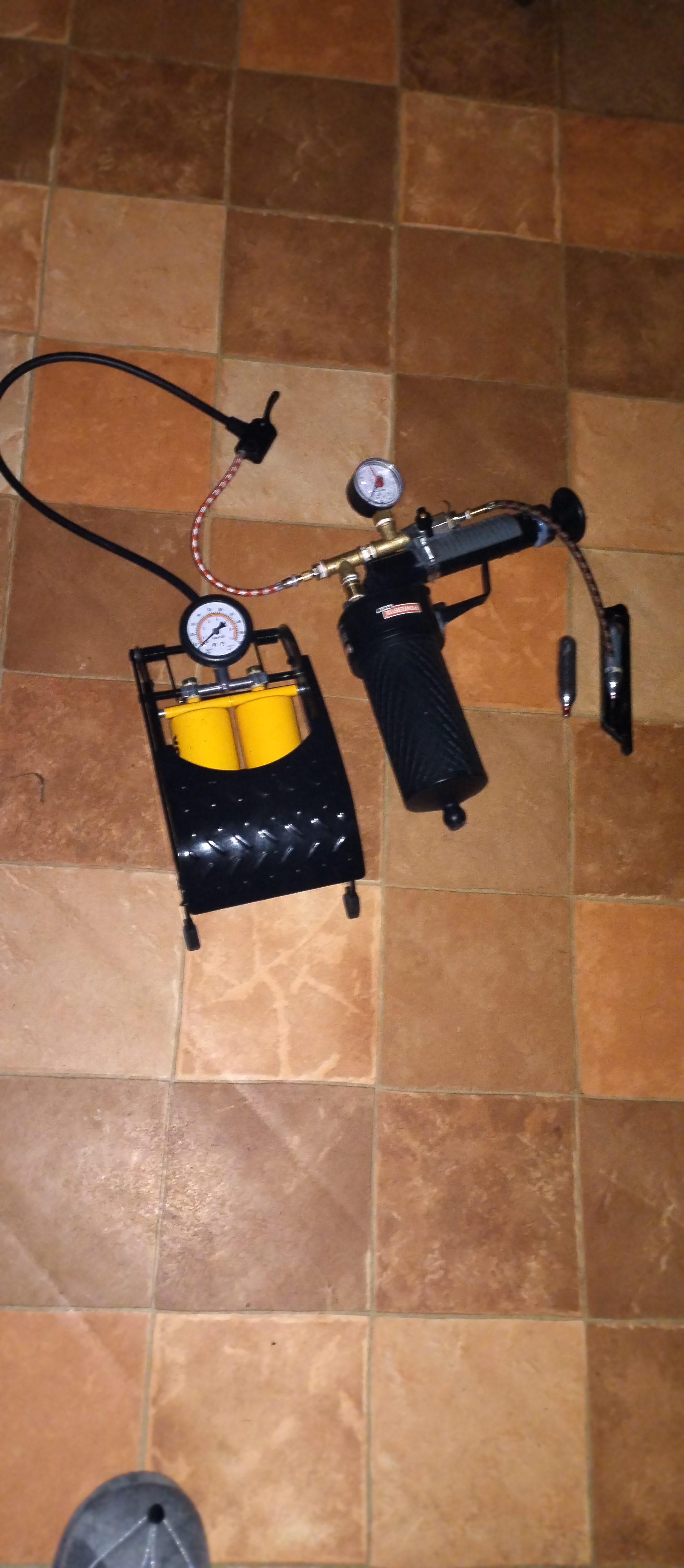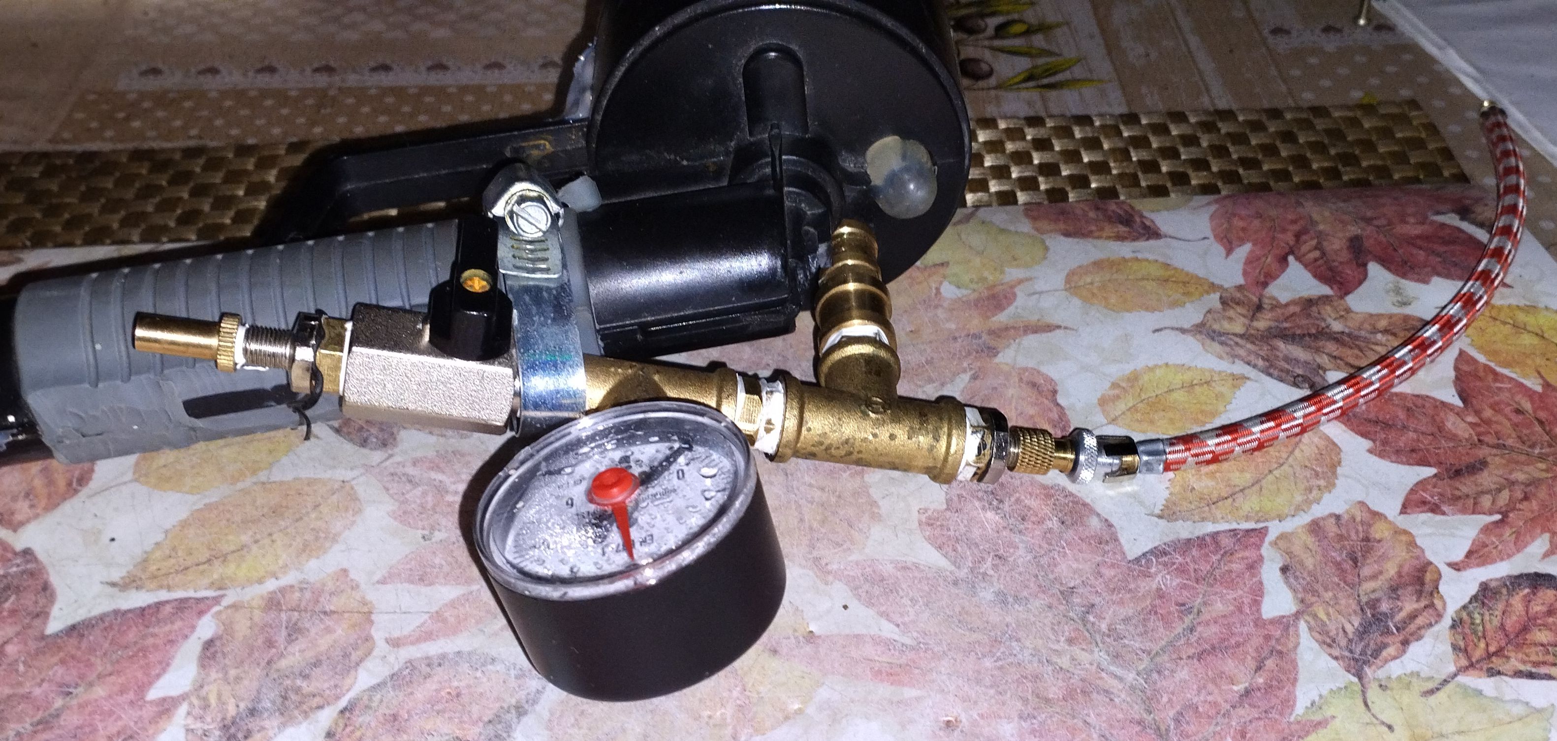 Proto jsem si vyrobil zkušební bombičku na hustilku a napřed to chci odzkoušet vzduchem (těsnění mám mraky a mraky a často se musí i experimentovat, protože výrobce konkrétního zařízení originál vůbec neprodává a když, tak za nevídané ceny - jsou všude jiné, ale bombička je vždy stejná - viz foto)