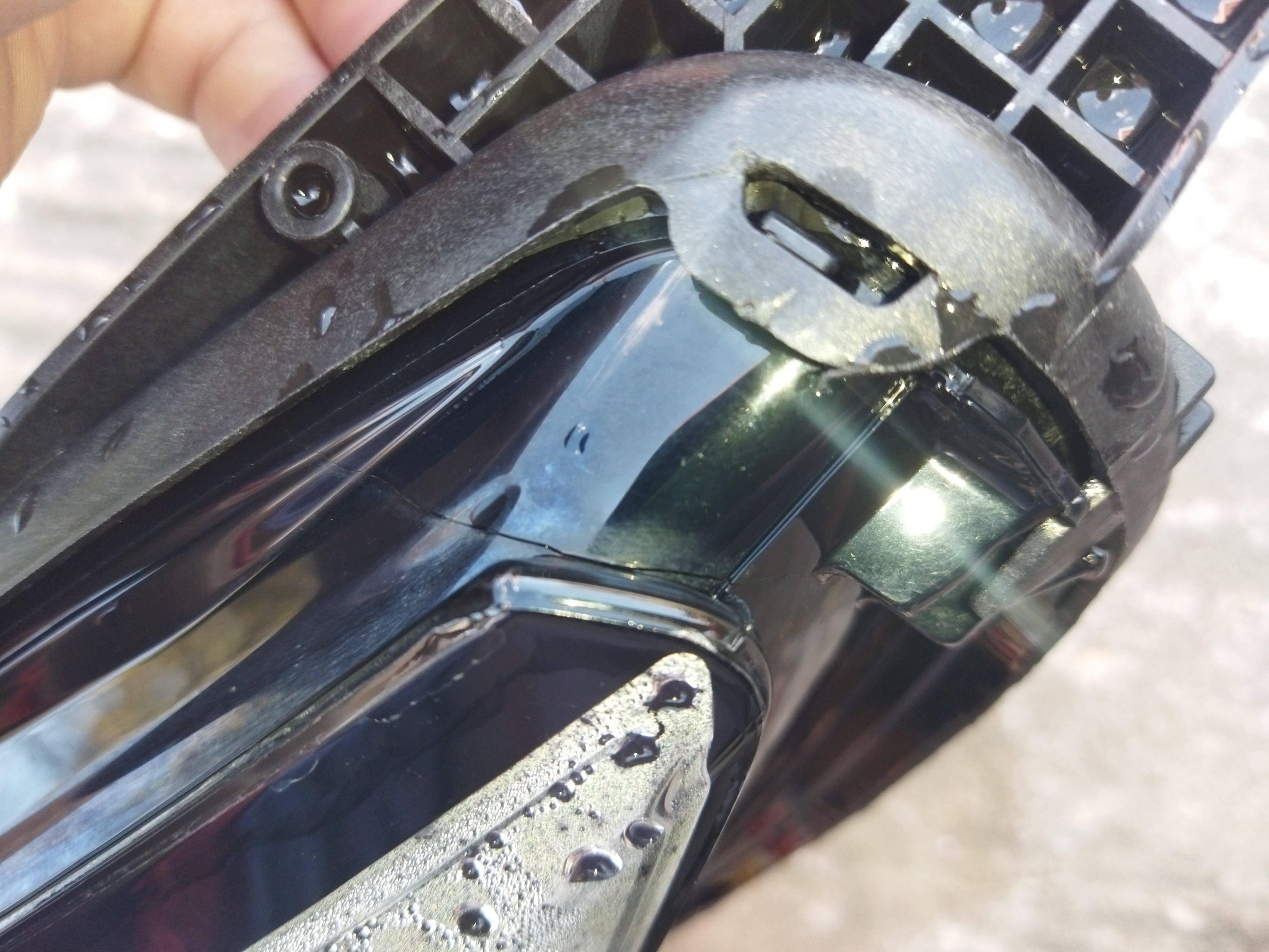 Otázka je poměrně jednoduchá, z přiložené fotky je vidět prasklina, kterou mi do světlometu teče voda. Napadlo mě prasklinu a okolí zapatlat silikonem jako se používá třeba v koupelnách, ale prasklina je poměrně tenká a nevím, jestli by silikon do spáry vůbec vlezl a zároveň mám pochybnosti, jestli by držel na plastu světla a brzy se nesloupnul. Přemýšlel jsem i o nějakém lepidle, ale tam je zase pochybnost o voděodolnosti, vodotěsnosti a flexibilitě, protože roh světla je uchycen a prasklina se hýbe.