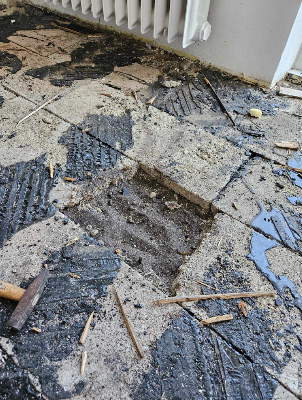 No potěš koště. Ty desky jsi tam měl nechat. To je, podle vzhledu, taková hobra či něco podobného. Sis přidělal zbytečně práci. Měl jsi asfalt roztavit hořákem a seškrabat. Na to už mohlo přijít cokoliv, určitě plouvoučka je lehčí jak dubové parkety.