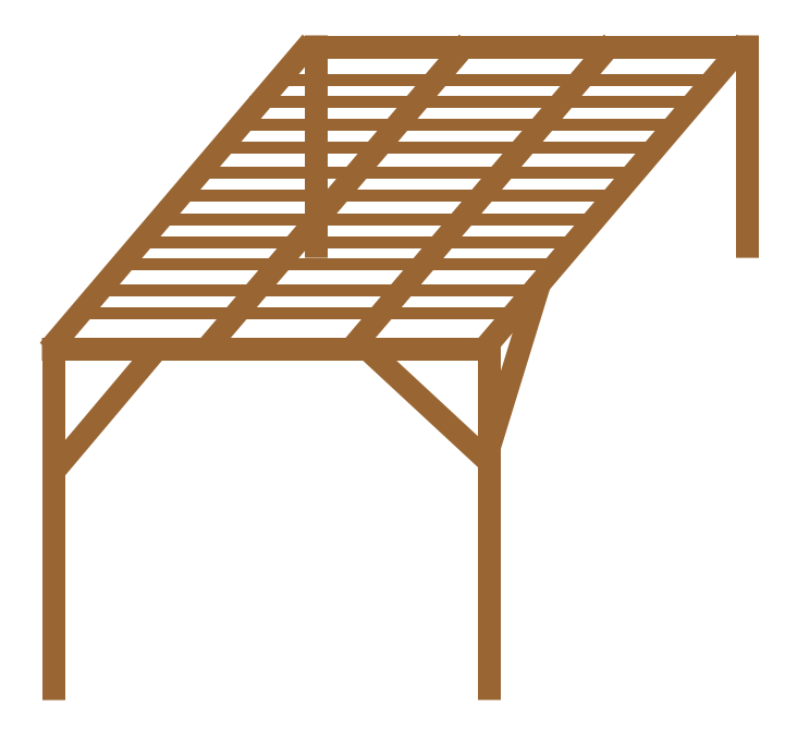 Nějak takto. Samozřejmě síla trámků a hranolů by se musela dostatečně dimenzovat a kvalitní spoje bez truhlářského vybavení doma asi neuděláte. Sice se prodávají různé (ocelové) montážní prvky, které se používají na stavby pergoly, ale to by asi v bytě nevypadalo moc esteticky.