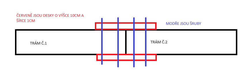 Je to nesmysl, v té délce a takto spojit tři trámy, to váhu neudrží. Ani kdyby to byly čtyřmetrové trámy spojené uprostřed. Musel by to být příhradový nosník.