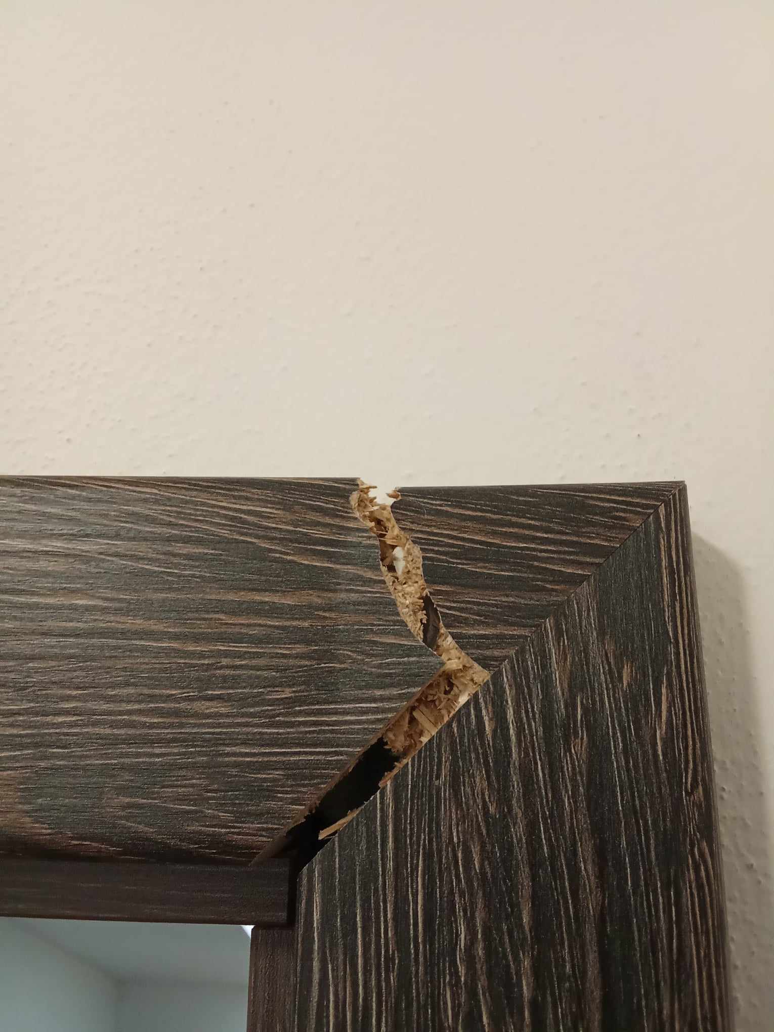 koukni na výrobce dveří. Rozbil jsi futra. Při troše šikovnost si to opravíš sám. Cena bude okolo tří papouchů podle výrobce. Toto nejde opravit slepením musíš koupit nové. Když si zavoláš truhláře, udělá to také, nebude se s tím sr.át.