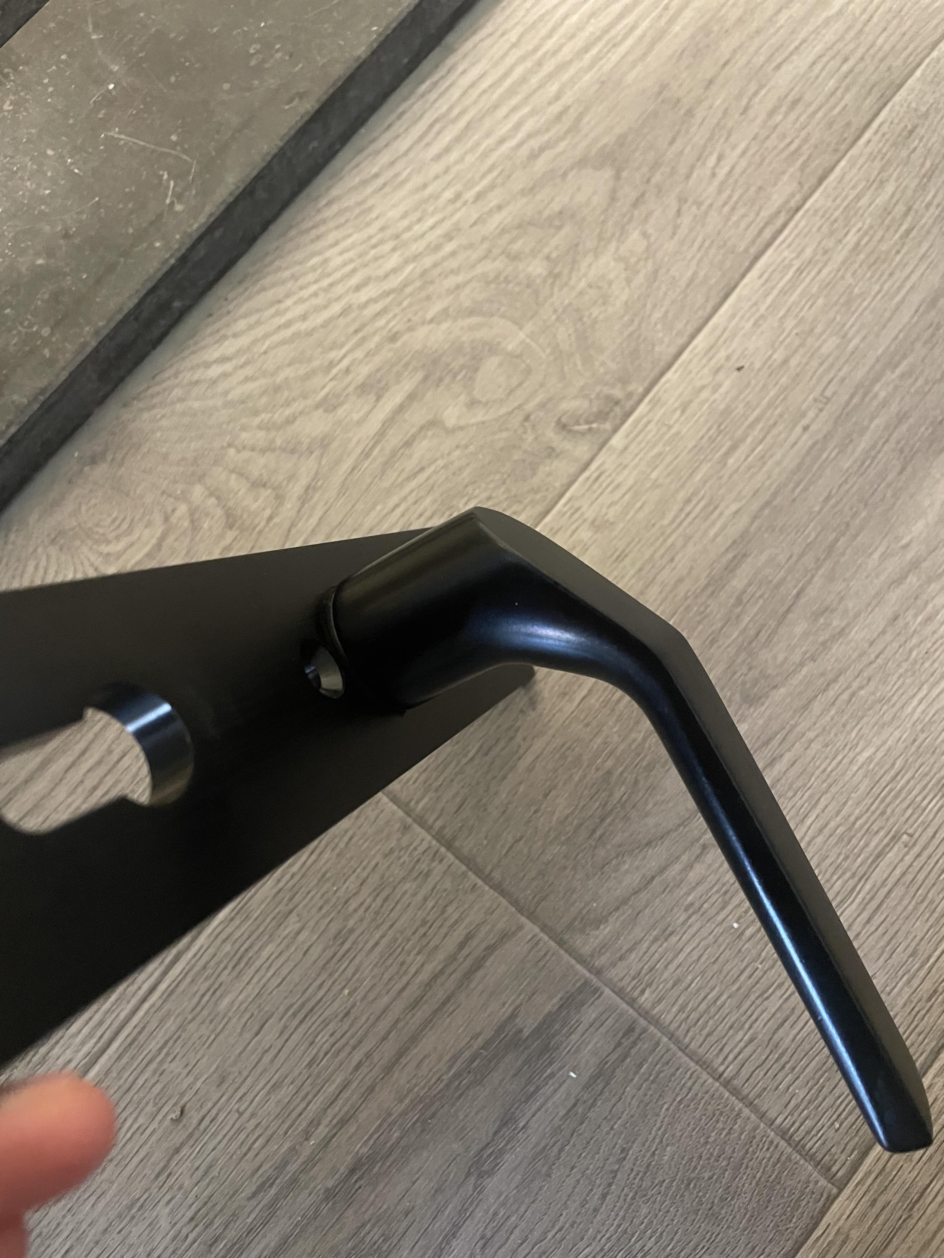 Aha... no tak bych dovnitř dveří na tu tyčku dal vymezovací distanci, podložku a segrovku tak aby byla pod úrovní dřeva , nebo tu tyčku provrtal a dal tam kousek svařovacího drátu jako zajištění a pak nasadil kliku...