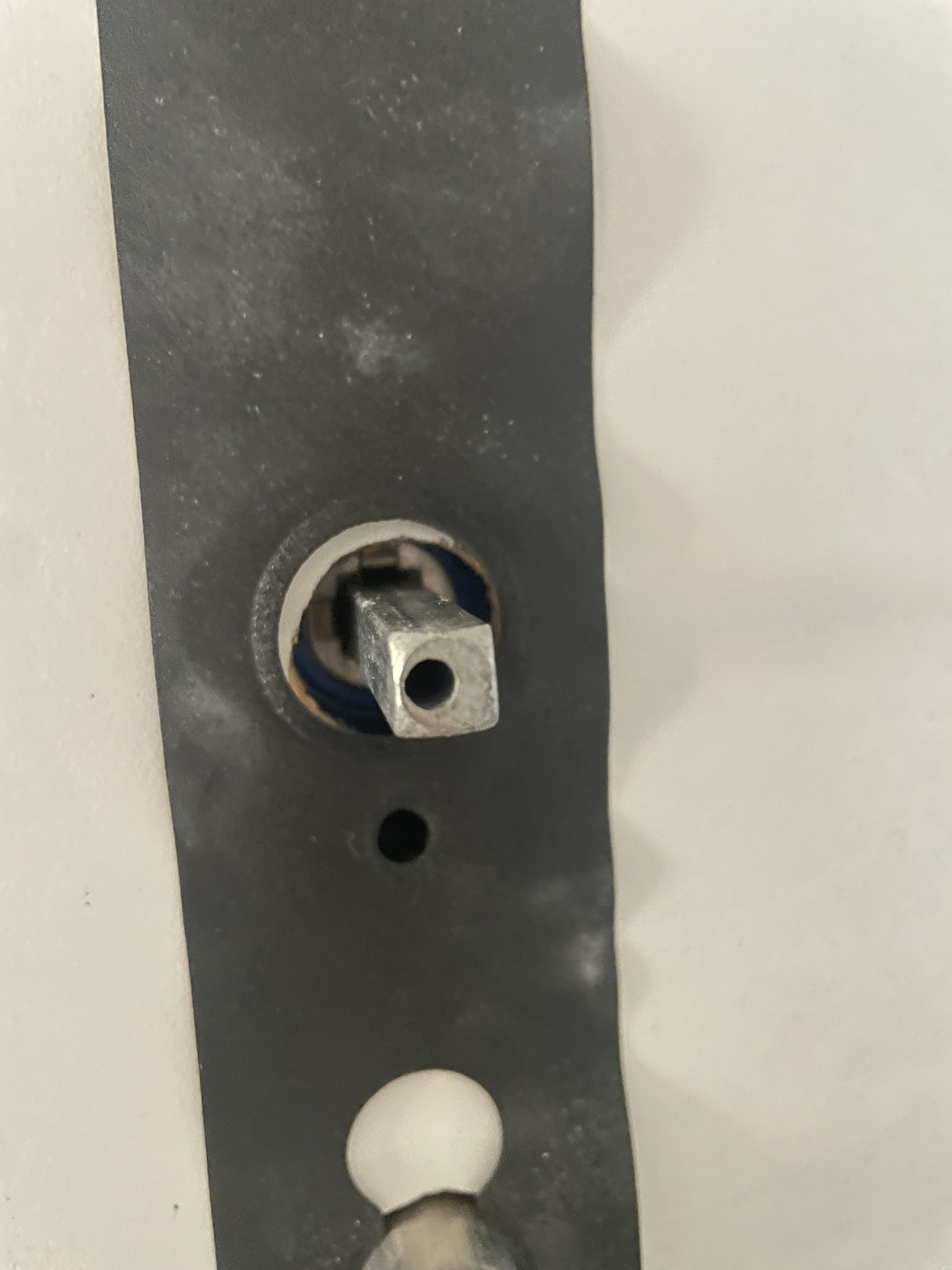 Zdravím, laicky jsem opravoval dveře, protože mi dveřní koule jednoho dne zůstala v ruce. Rozebral jsem to, kouli zpátky přišrouboval na to vřeteno, takže na něm už drží, ale muselo mi něco vypadnout, protože když to teď dám celé zase do kupy, vypadá to jen zdánlivě v pořadku. Když teďka zvenku zaberu za tu kouli, vytáhnu ji i s tím vřetenem z kliky na druhé straně, celkem bez námahy. Na jedné straně vřetena je závit (logické) na druhé straně jen malá dírka ve které nic není (zde asi něco chybí?), nechápu teda jak to v té klice může držet. Klika má jen čtvercový otvor a ve vnitř vypadá, že nic moc speciálního není, jen díra. Co je s tím špatně? Přidávám fotky vytáhnuté koule z dvěří.