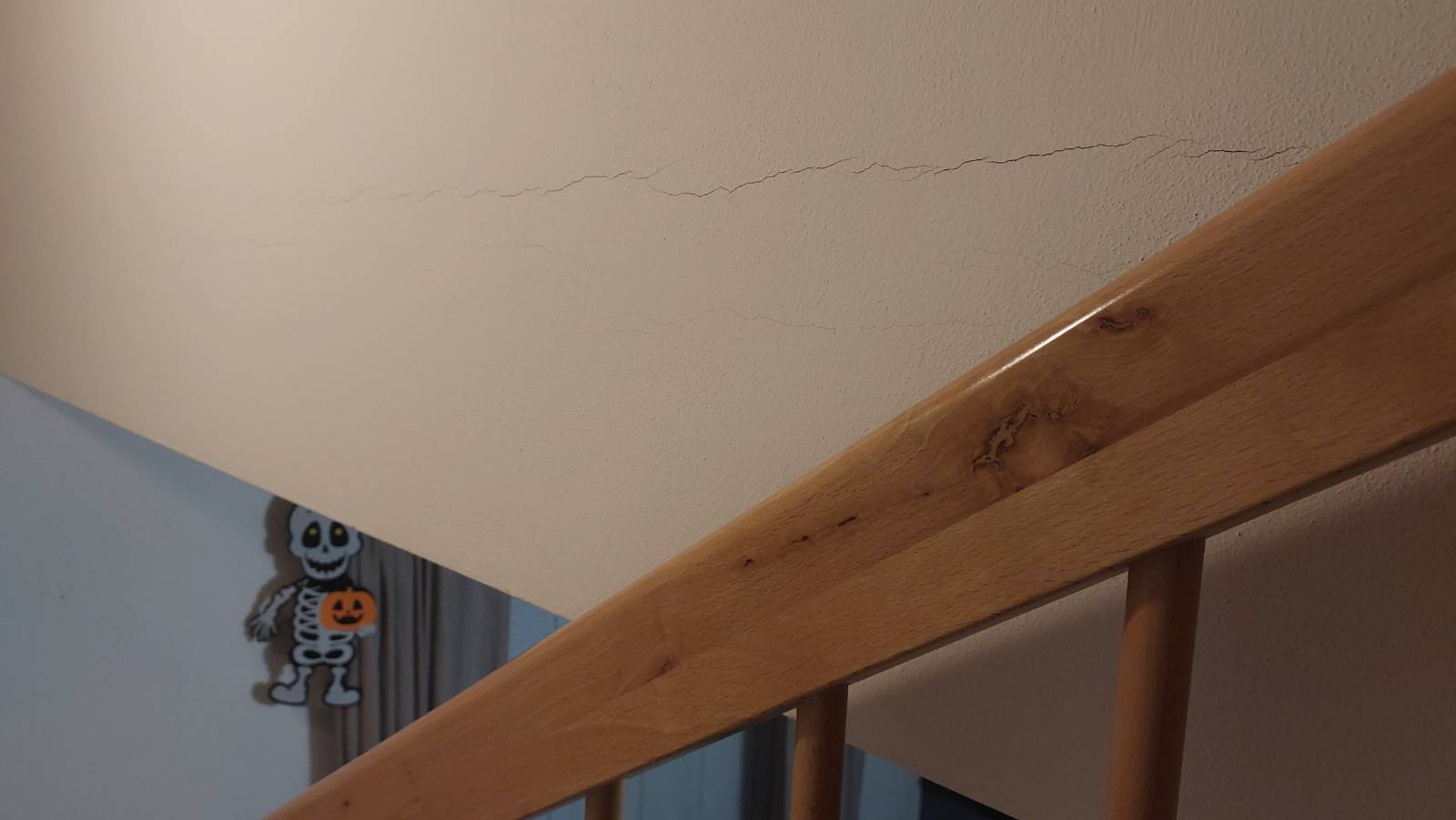 Dnes jsem trochu zpanikařil, protože mi přijde, že praskliny jsou větší. Možná je to jen zdání, já hlupák si před měsíci, kdy jsem si jich prvně všiml, neoznačil jejich velikost. Vlásečnicové praskliny vedou skoro po celé délce horní místnosti, kterou jsem rekonstruoval. Na této straně horní místnosti je váha přidané SDK stěny cca 250kg rovnoměrně rozmístěné po (skoro) celé její délce 3,6m. To jsem nepovažoval za problém, kdejaká skříň s oblečením / knihami + obsazená postel by vytvořila asi stejné zatížení. Ale když vidím ty prasklinky, tak začínám mít obavu, jestli se nepřipravit na demontáž předstěny a nepovolat statika.