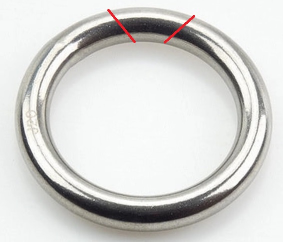 Mám nerez kroužky (průměr 65 mm, tloušťka 8 mm) a potřeboval bych kousek vyříznout v určitém úhlu (viz obrázek červené čáry). Jakým nástrojem to nejlépe udělat? Stolní pásová pila, stolní pila s řezným kotoučem...? Kroužků mám více kusů a potřebuji, aby všechny byly vyříznuté stejně.