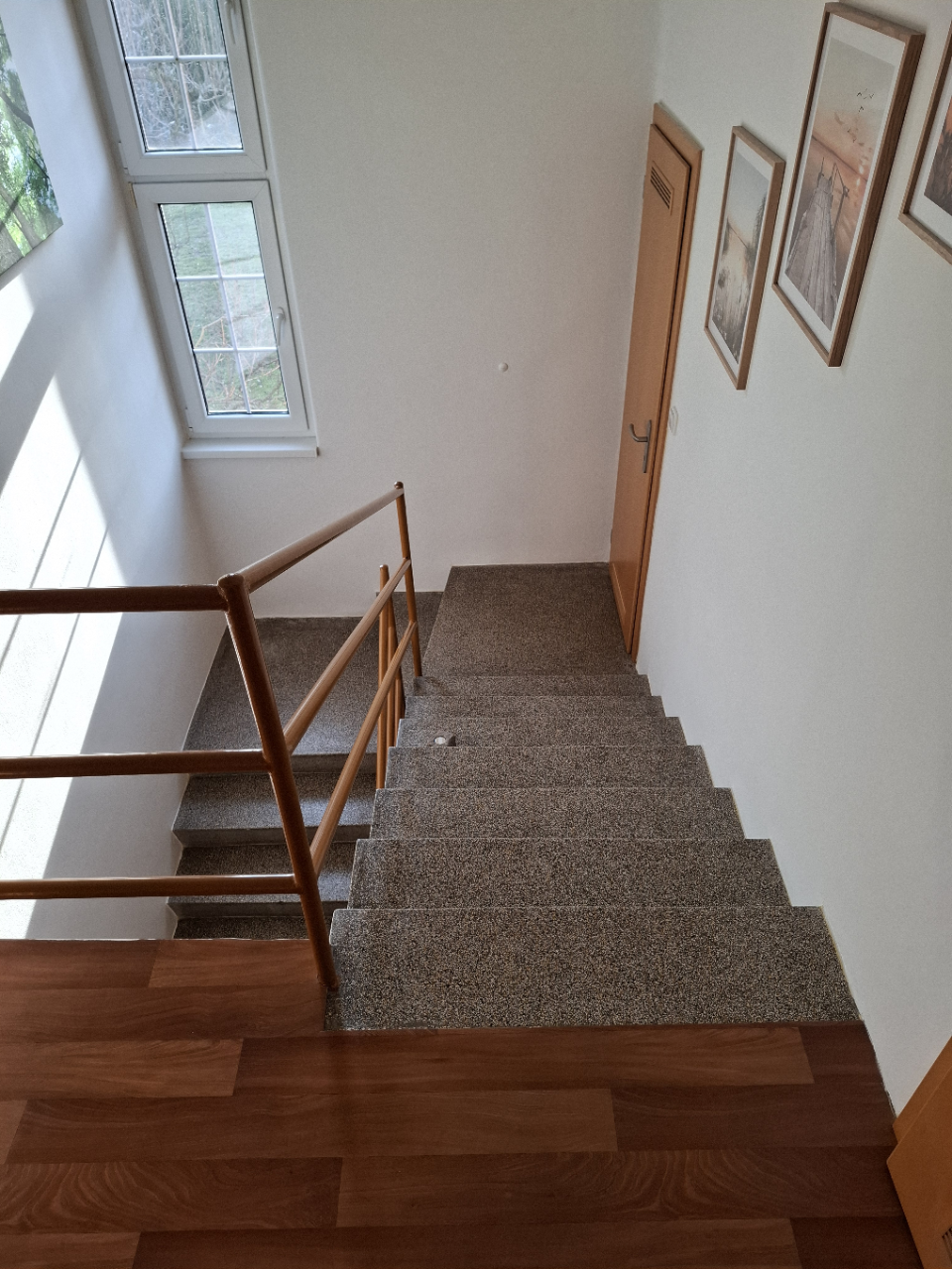 Schodiště bych zachoval, vypadá dobře i rozměry schodů jsou správné. Ale nechal bych od firmy udělat dřevěné zábradlí s použitím stávajícího ukotvení do schodů, nebo nové ukotvení na stávajících místech. Nechal bych si ale udělat několik návrhů zábradlí od odborníka a pak bych vybral to které by se mi tam nejlépe hodilo. Nerez by tam byl jak „pěst na oko“ a působí studeně.