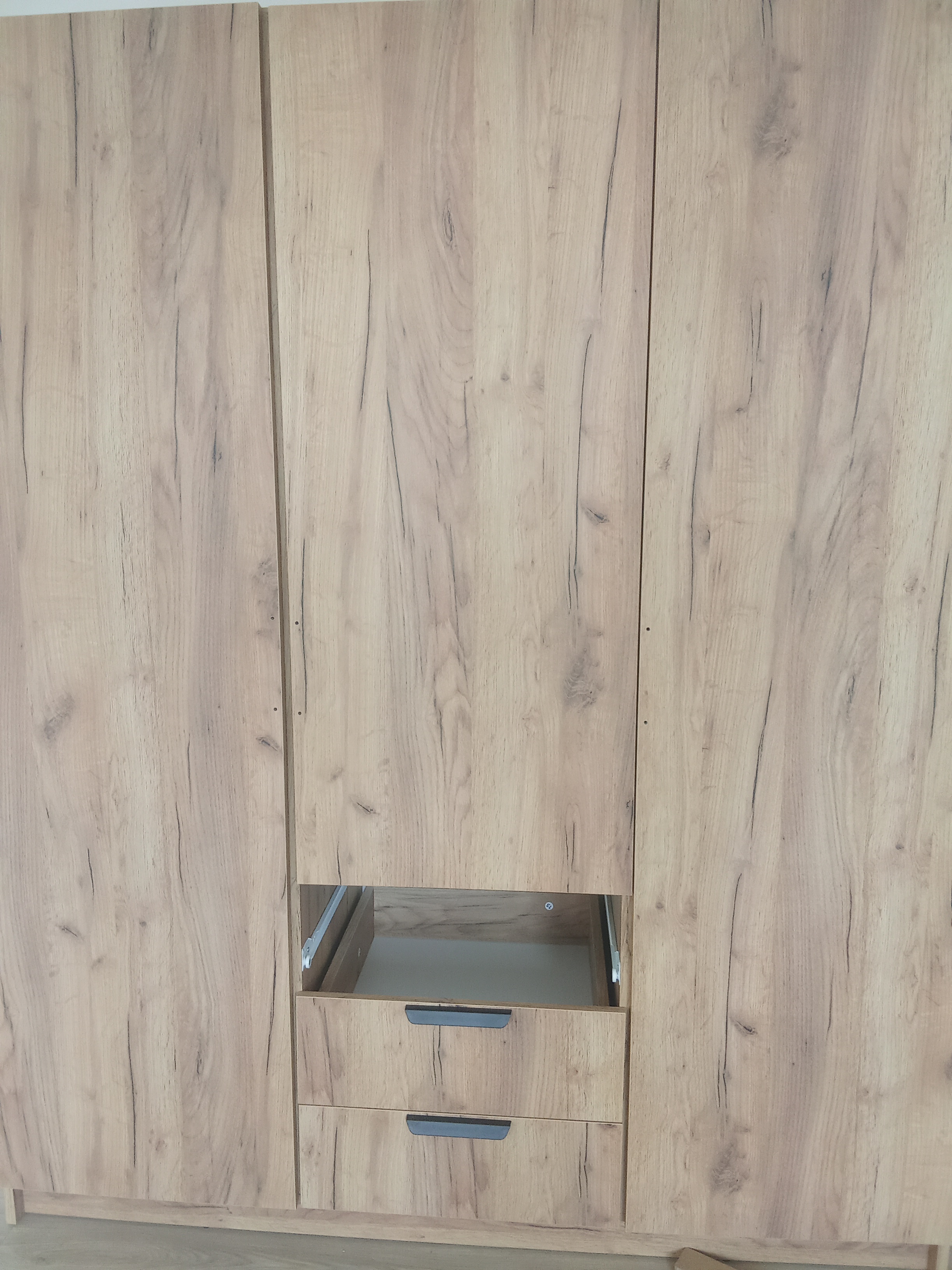 Ahoj, potřebuju radu. Koupil jsem skříň do pokoje, sestavení šlo v pořádku až do posledního kroku. Nevím že bych něco udělal špatně, ale prostřední dveře skříně jsou křivé, jdou směrem z leva dolů (viz fotka). Díky tomu nejde zavřít na levé straně šuplík pod dveřma, protože o sebe dřou. Utáhlé vše je, nevidím tam nic špatně, přikládám fotky, nevíte kde by mohl být problém ? Díky (v příloze fotky)