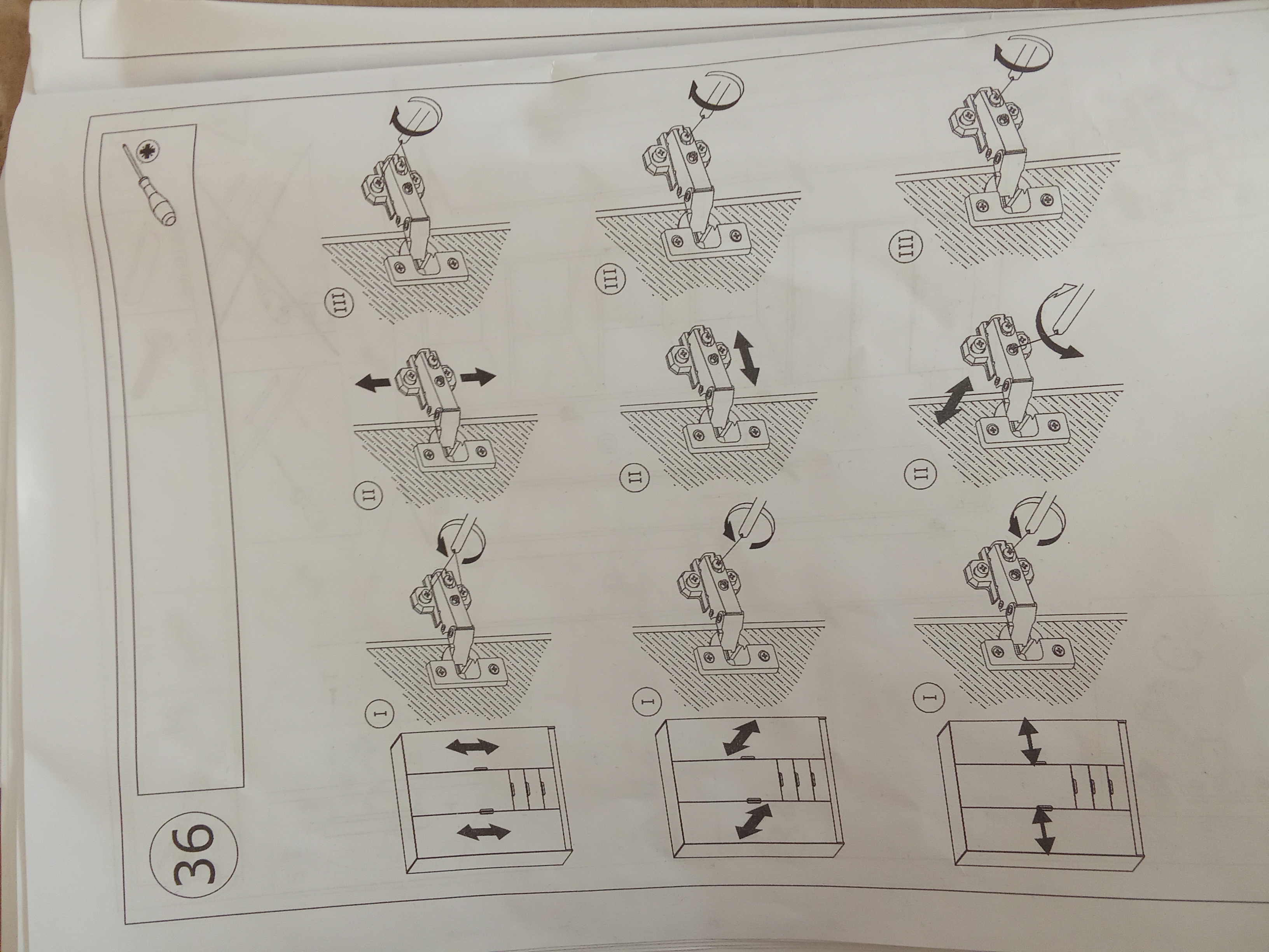 v navode posledna zvisla sada obrazkov (uplne vpravo), srob na konci v slicovom otvore povolit, ale na zaciatok len trochu, na zaciatok postaci pol otacky, potom srob blisie k pantu povolovat alebo zaskrutkovat podla stavu medzery (pozorovat zvecsuje sa zmensuje sa),