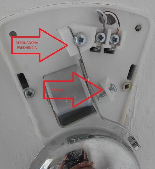- Potom dolnou skrutkou (prítlak) nastavíš vzdialenosť kladivka od zvončeka tak, aby to malo dobrý zvuk bez chrčania.