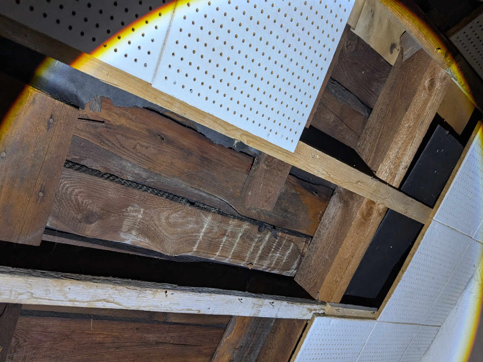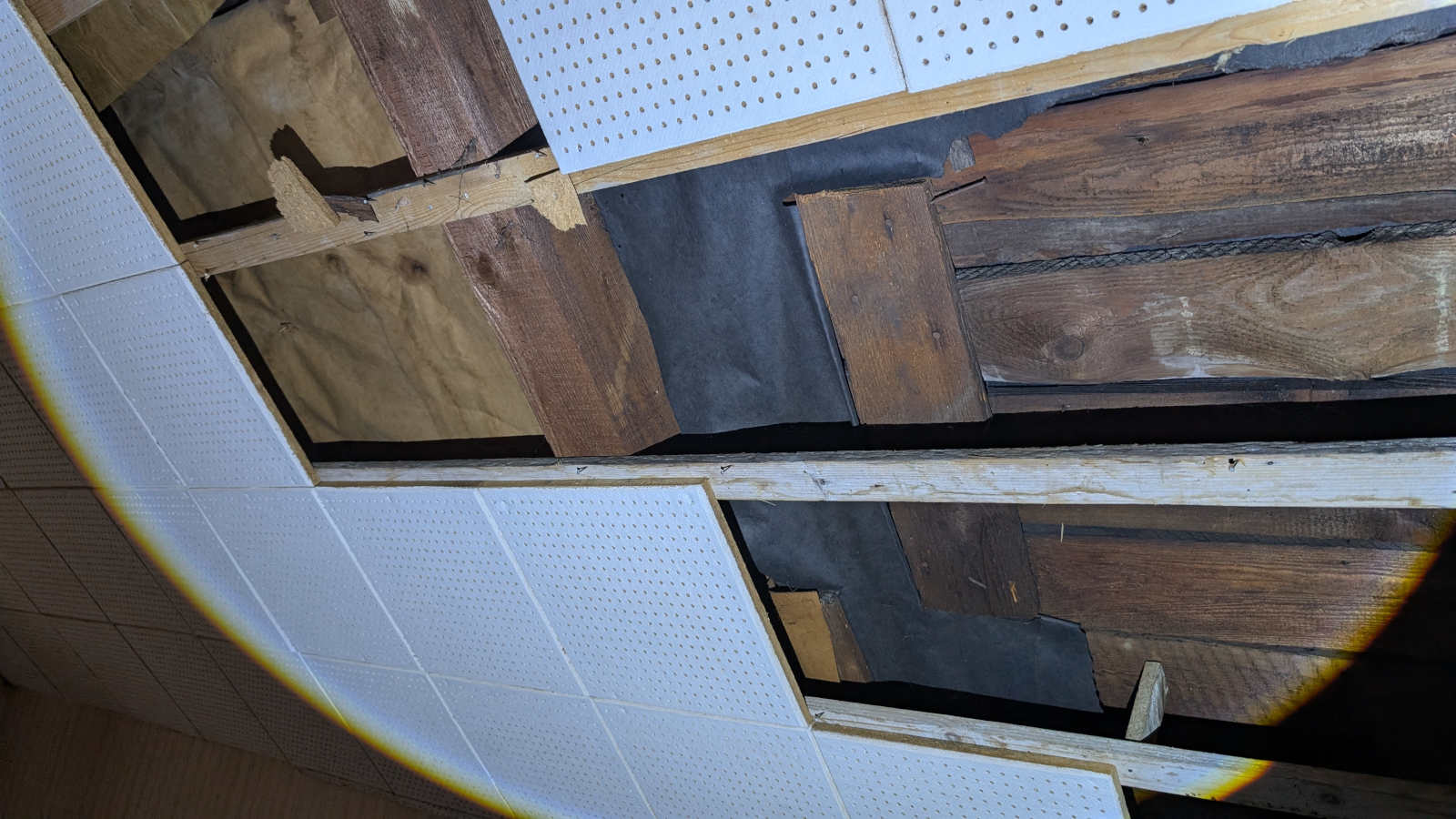 Posílám fotky jak ty obnažené krokve a dřevěný záklop vypadají.