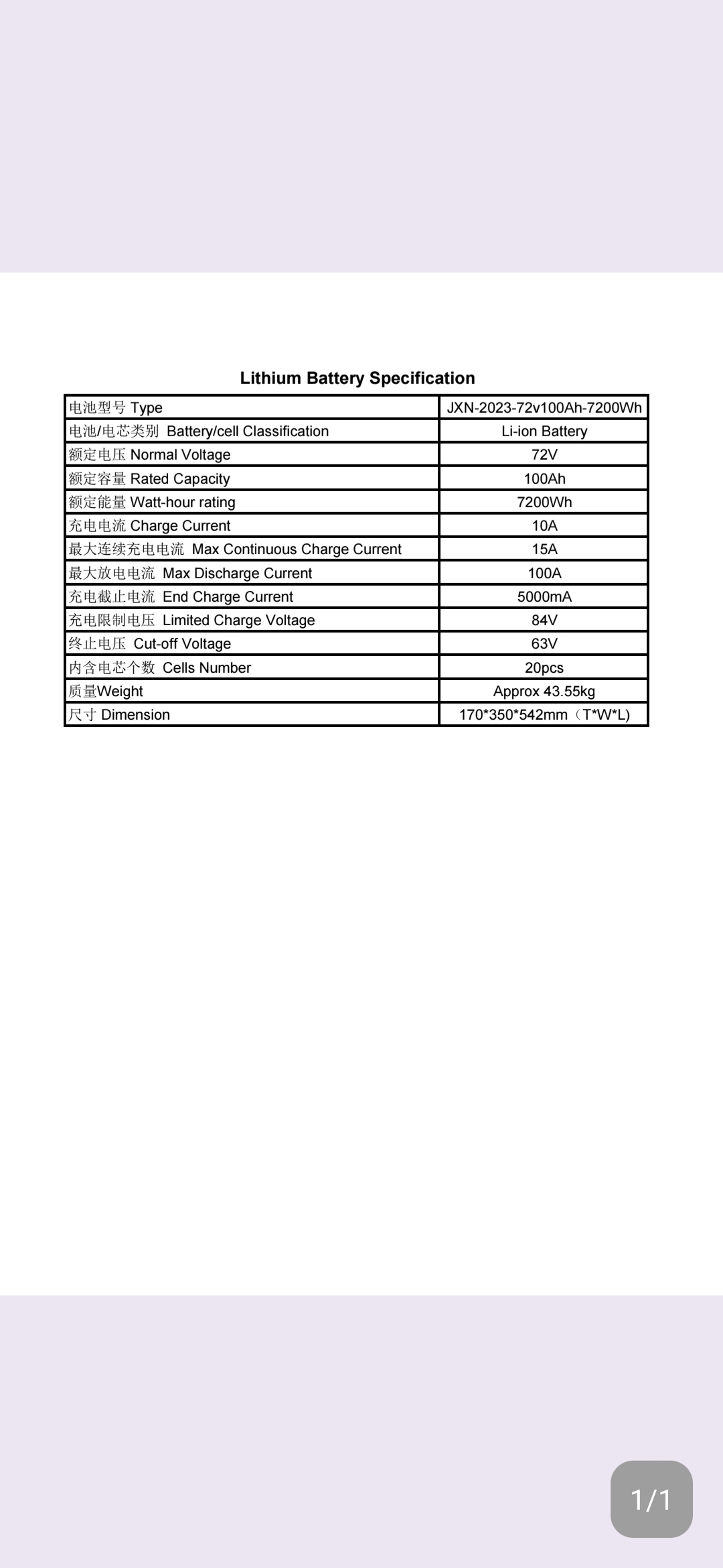 No nevím, ve specifikaci té baterie píšou 72V a sestává z 20 článků, tak by asi 72V nezapojovali seriově, ale paralelně. A ta baterie má 54 cm, tak jich tam asi 6 nebude. Přiložená specifikace je spíš pro celou sadu než 1 článek.