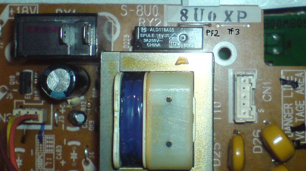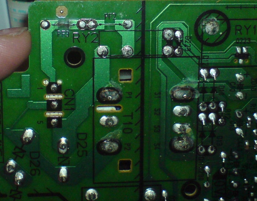 Na desce plošňáku je spálené jedno velmi tenké vedení PF3, které vede na relé.