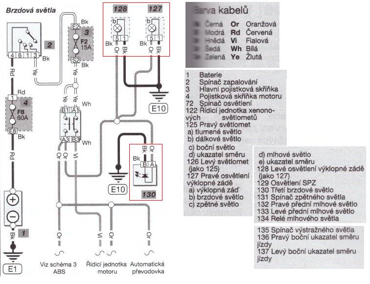 V příčurce u auta byly dva možné symboly pojistky brzdových světel, to jsem přehlédl, ten druhý symbol je čtvrtý zprava ve spodní řadě. Pojistku jsem proměřil, v pořádku.